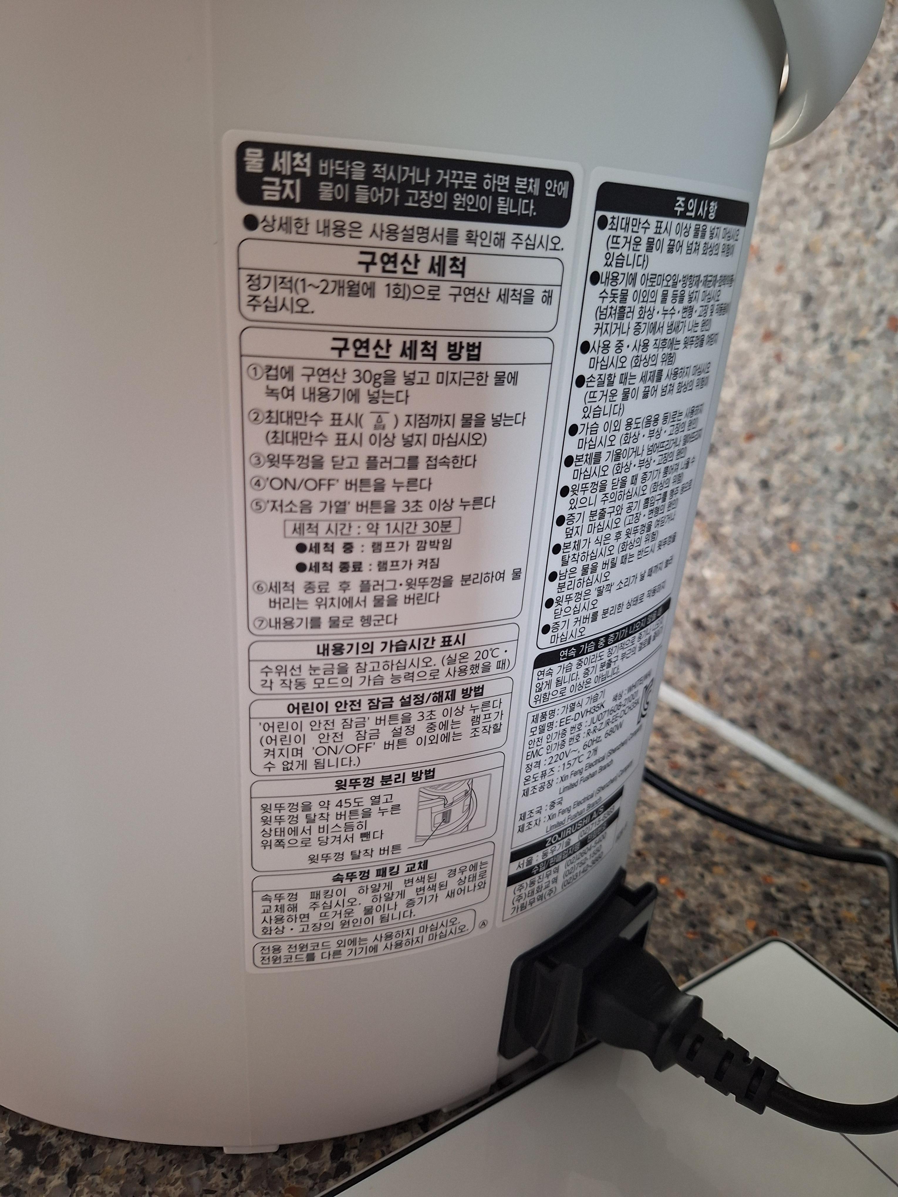 제품에 기재되어 있는대로 구연산으로 세척을 하면 되는데요.
